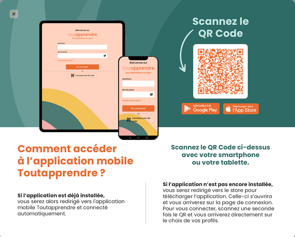 Vous serez redirigé vers le magasin d'application de votre smartphone ou tablette pour télécharger l'application : Play store pour les appareils Android, App Store pour les appareils iOS